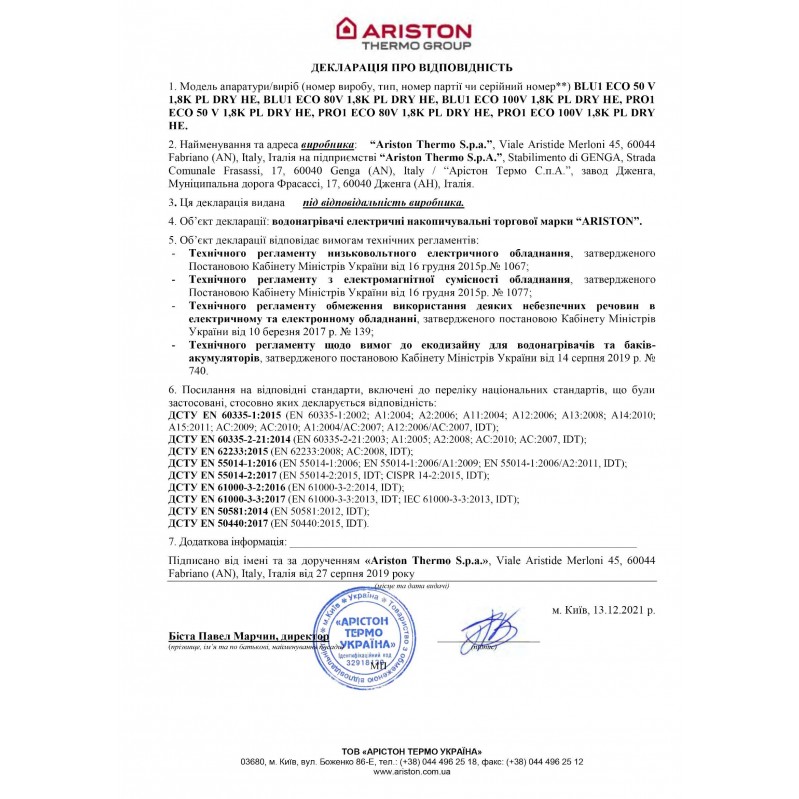 | Производитель | Ariston |